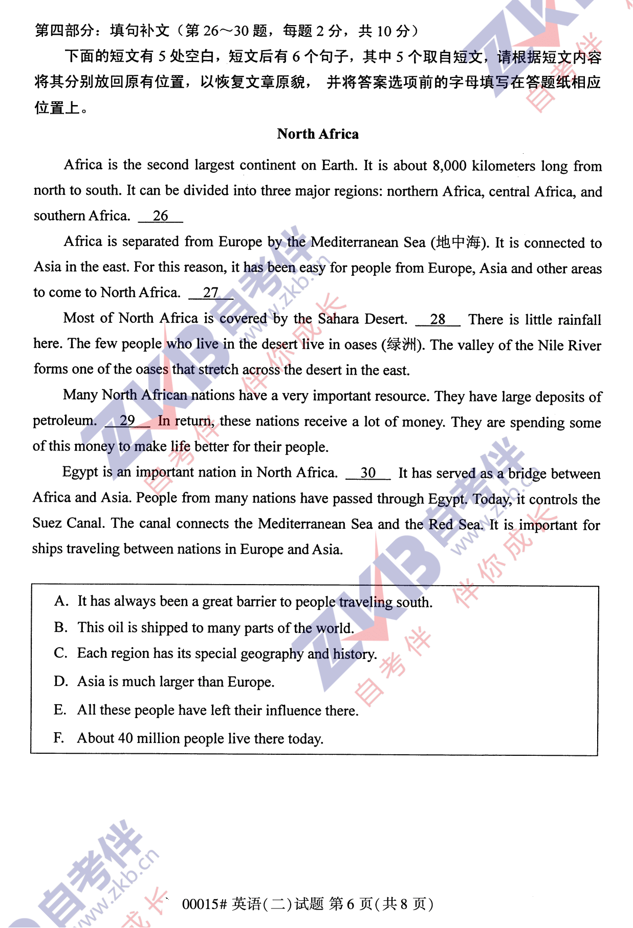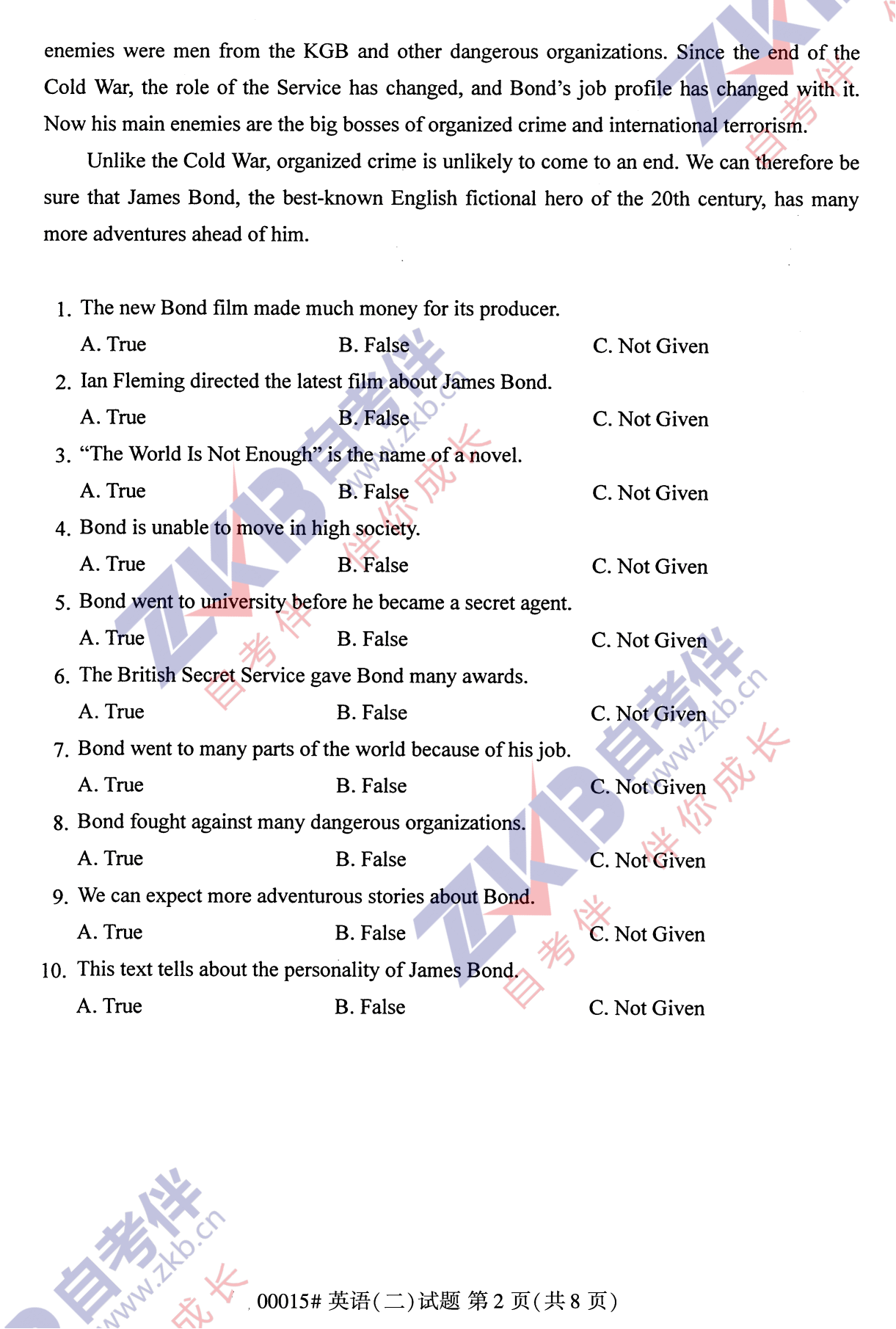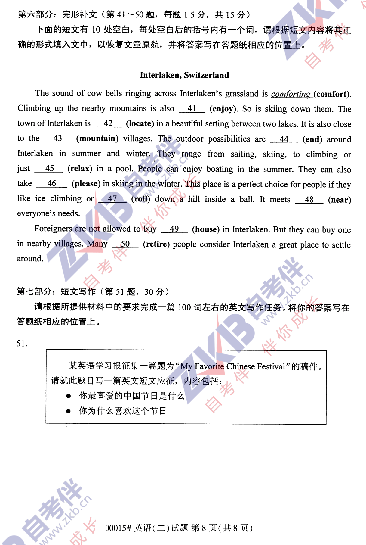 【导读】给大家整理了2021年10月浙江自考00015英语(二)试卷,希望能给你们带来一些帮助,快来浙江自考网看看吧!