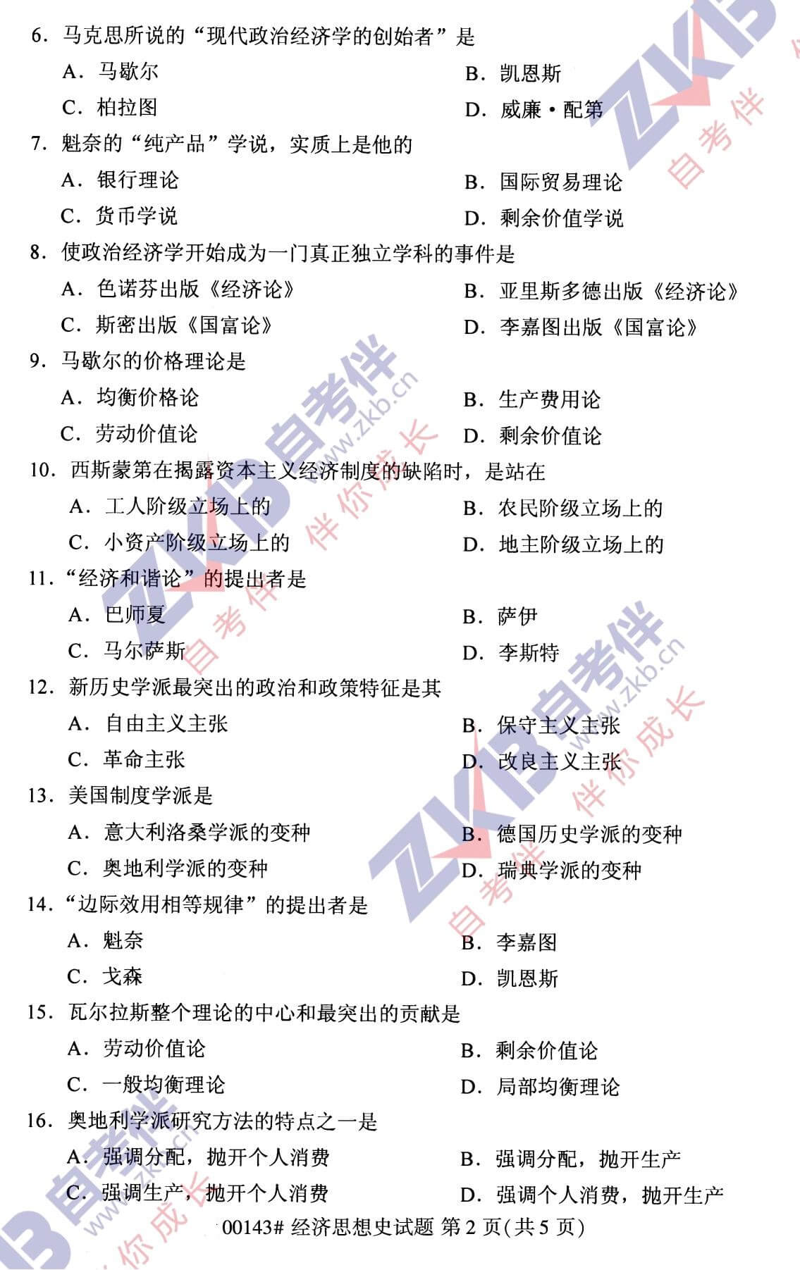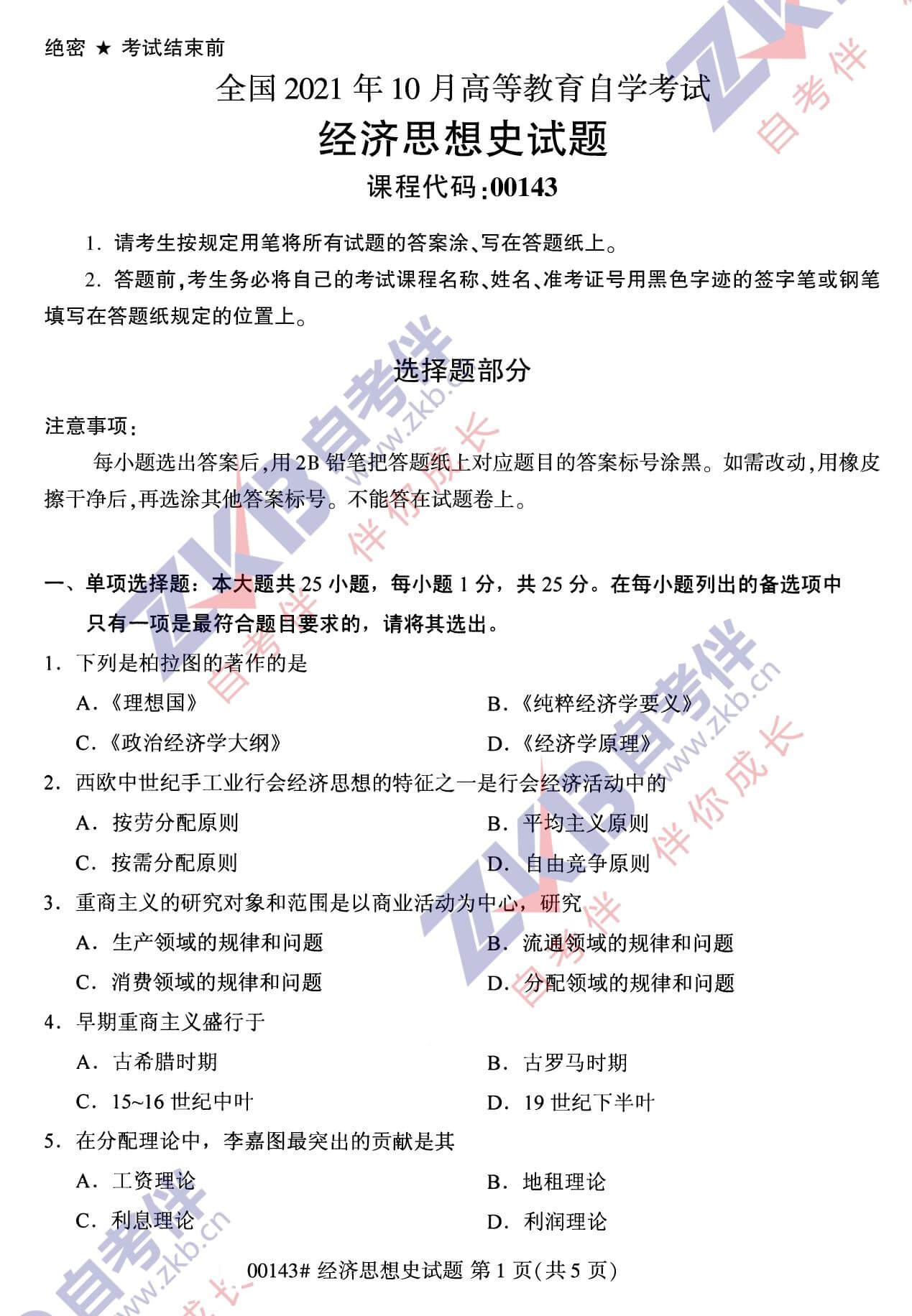 【导读】给大家整理了2021年10月浙江自考00143 经济思想史试卷,希望能给你们带来一些帮助,快来浙江自考网看看吧!