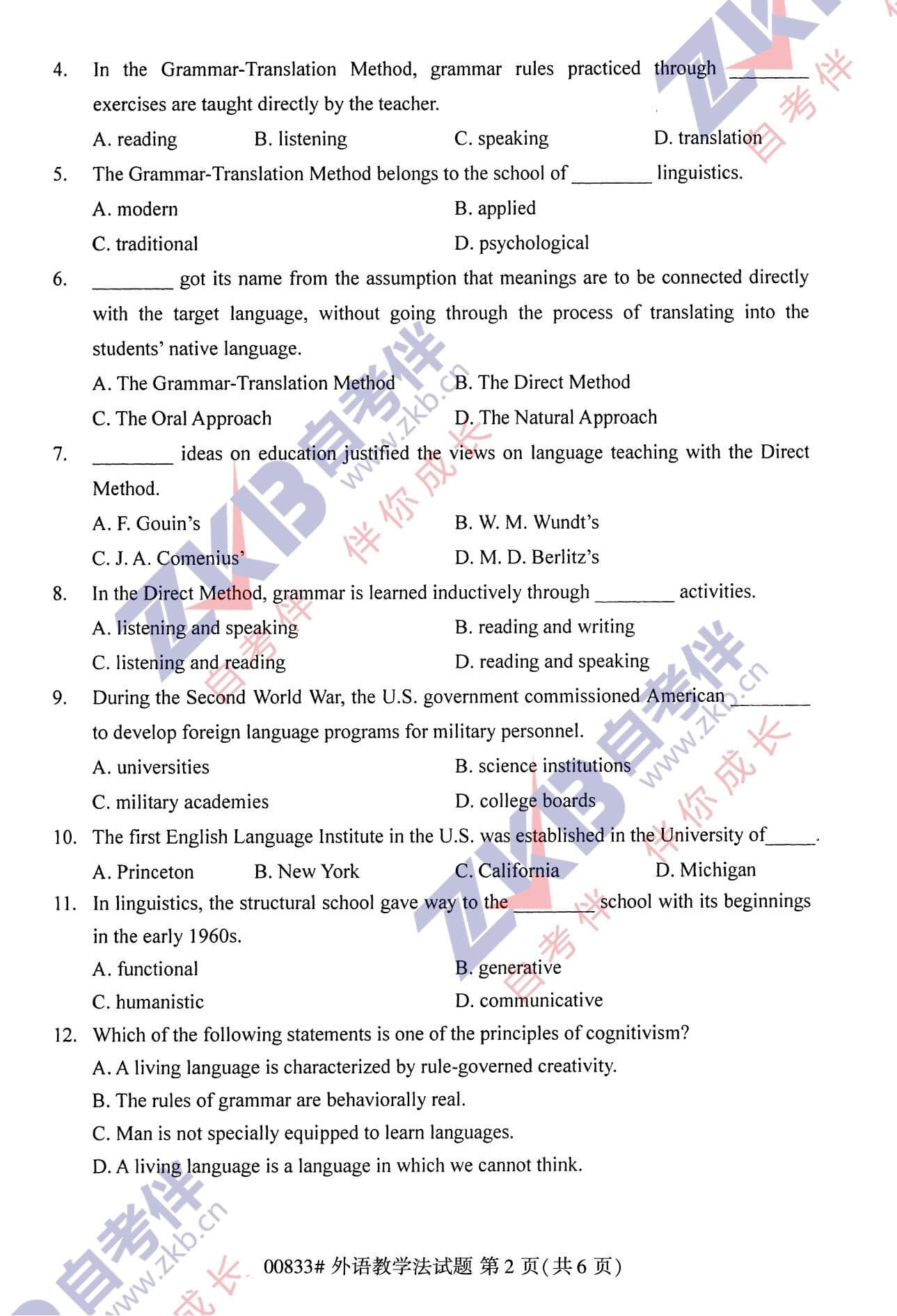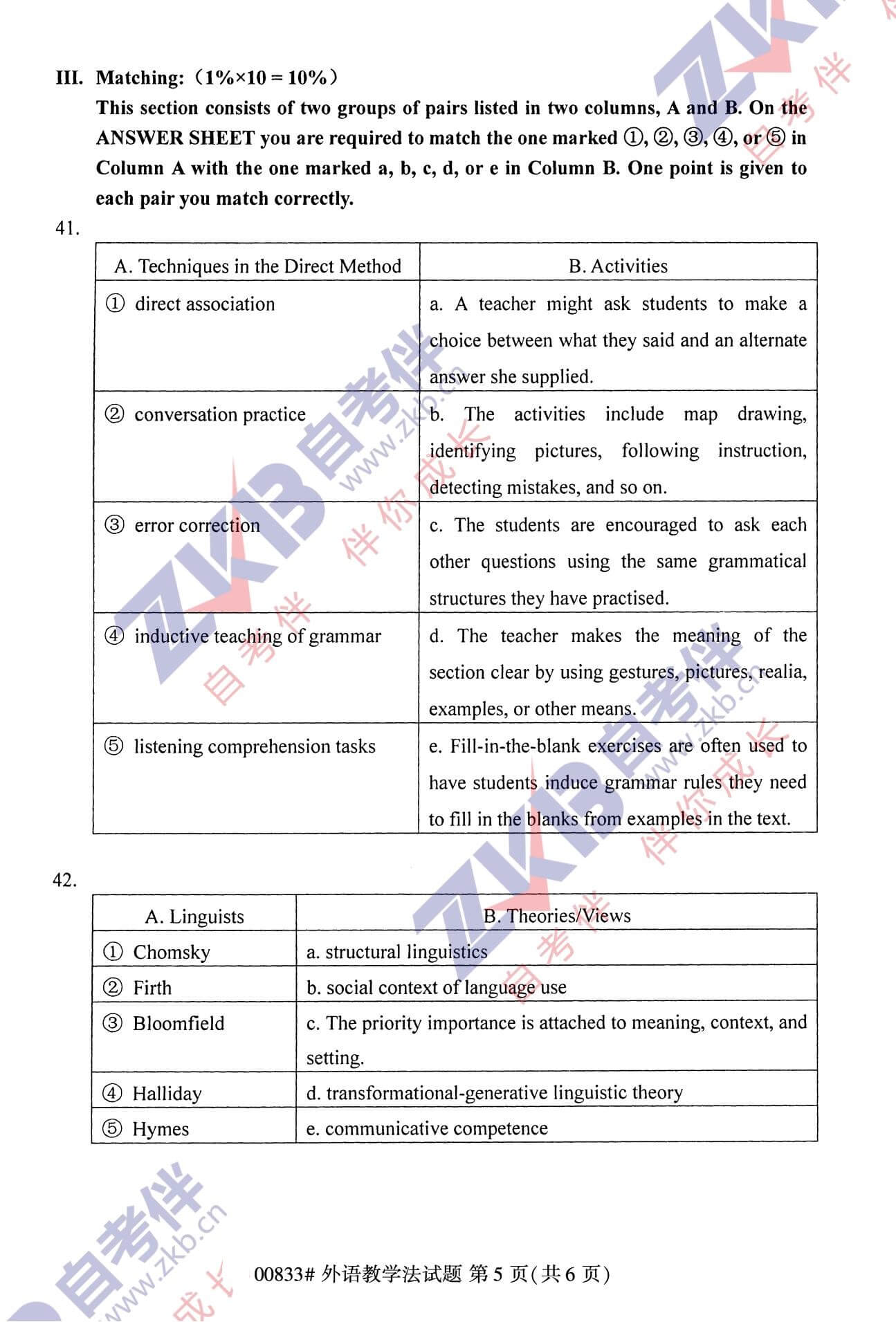 所在位置:浙江自考服务网 > 试题题库 > 历年真题 > 2021年10月浙江自考00833 外语教学法试卷