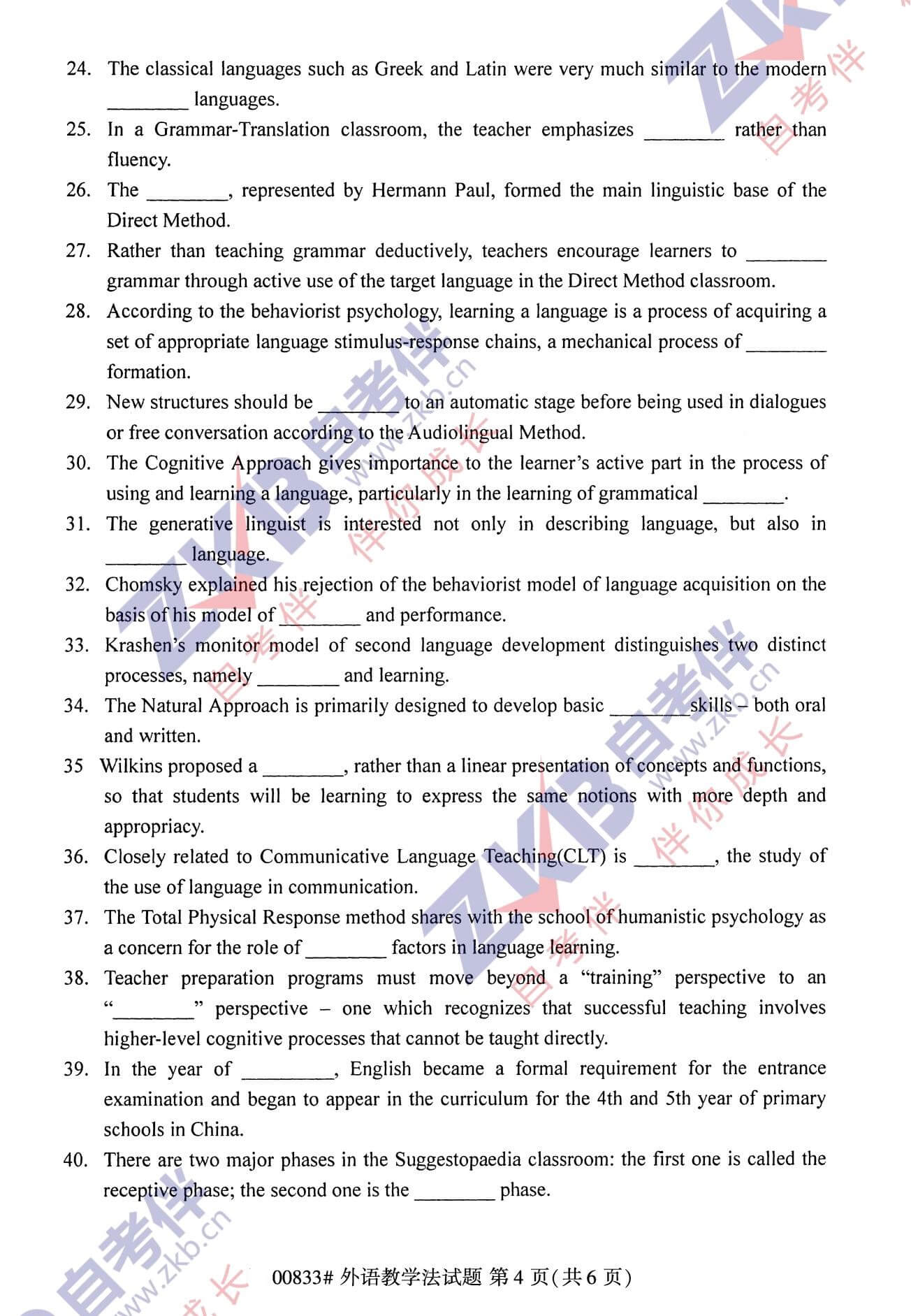 【导读】给大家整理了2021年10月浙江自考00833 外语教学法试卷,希望能给你们带来一些帮助,快来浙江自考网看看吧!
