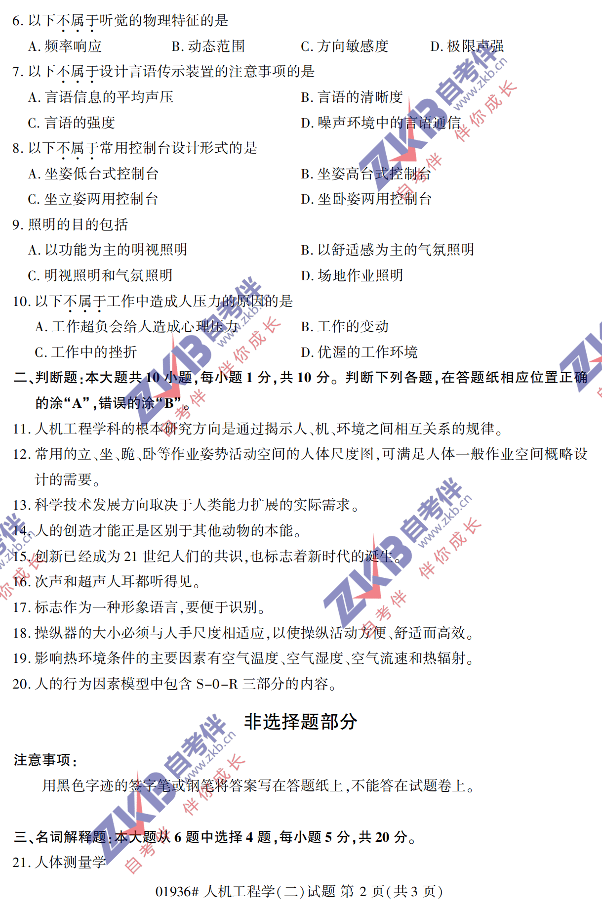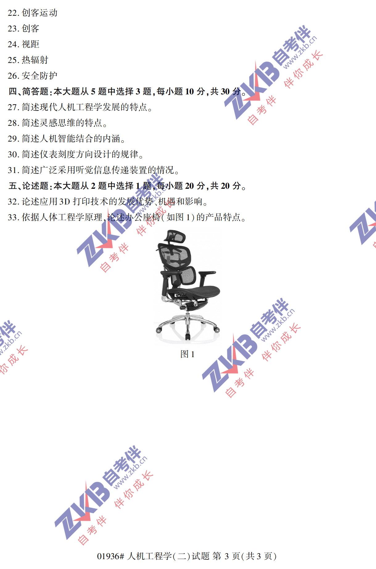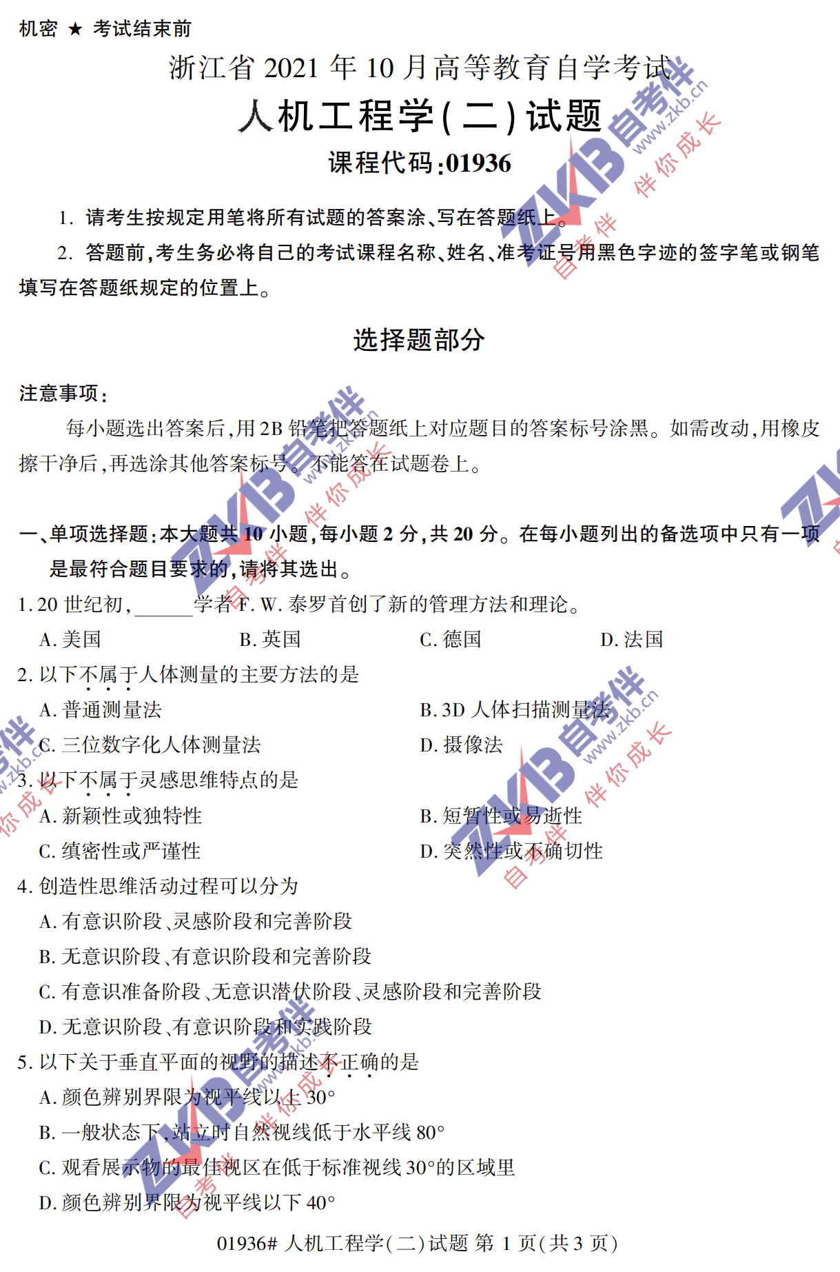 【导读】给大家整理了2021年10月浙江自考01936 人机工程学(二)试卷,希望能给你们带来一些帮助,快来浙江自考网看看吧!