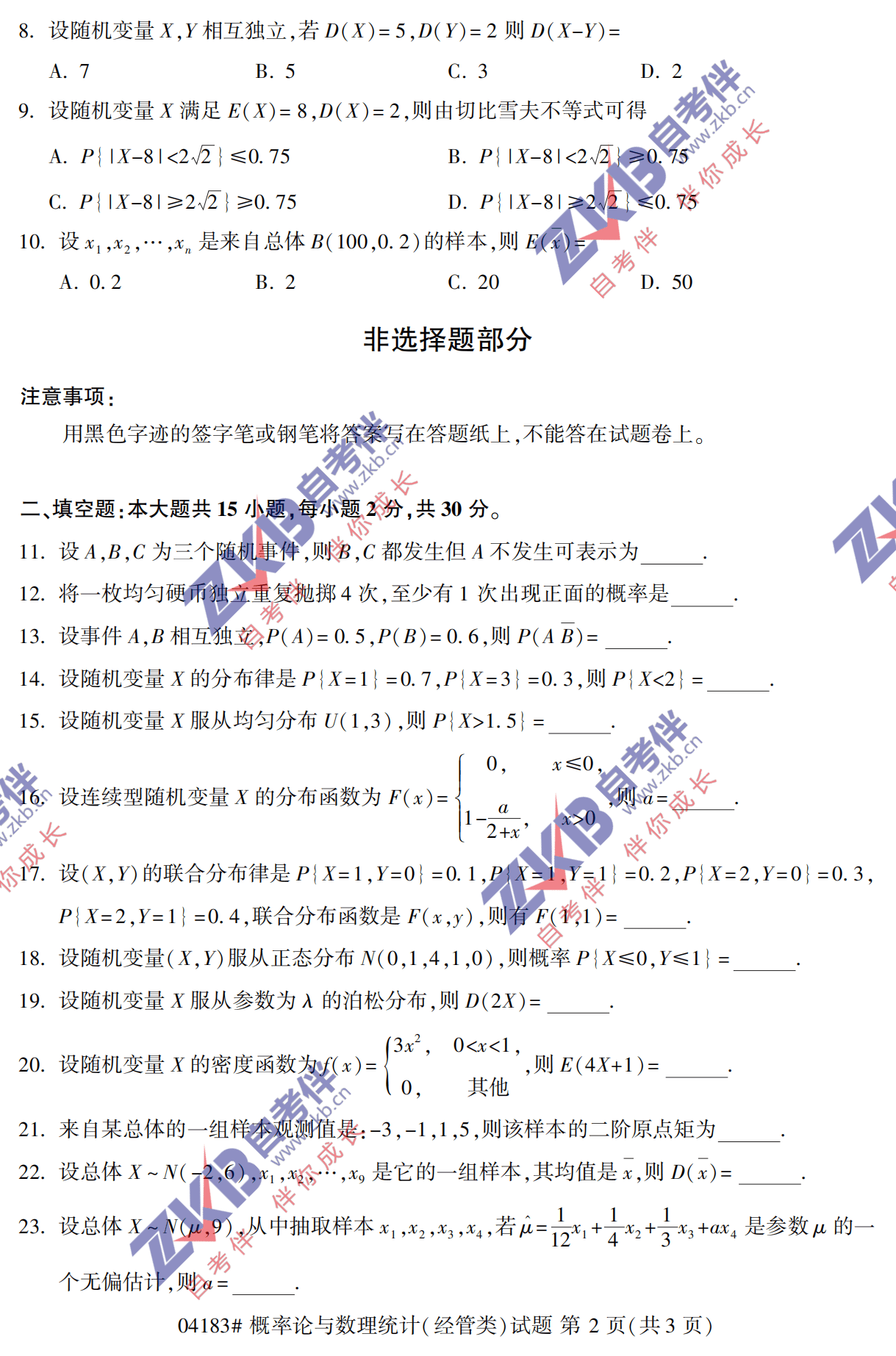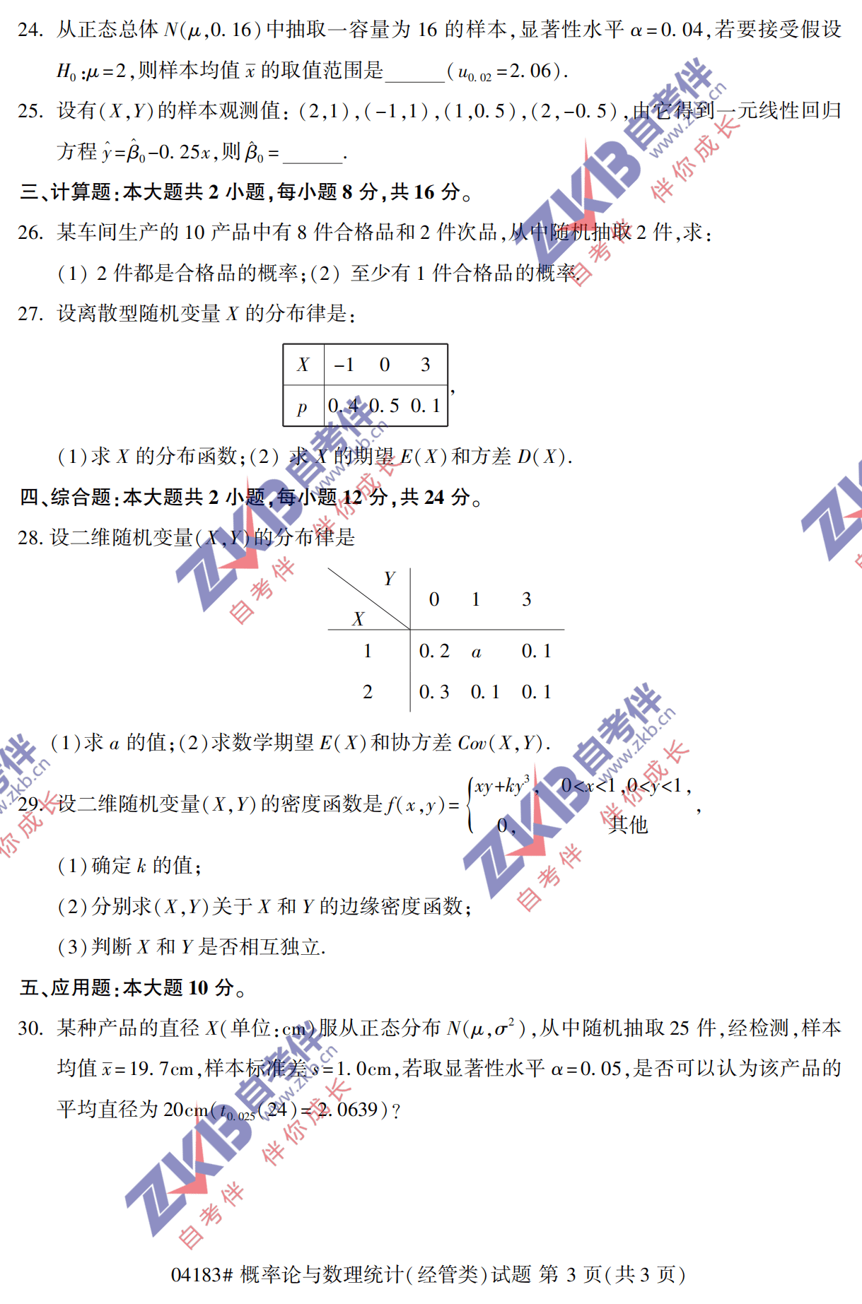 所在位置:浙江自考服务网 > 试题题库 > 历年真题 > 2021年10月浙江自考04183概率论与数理统计(经管类) 试卷