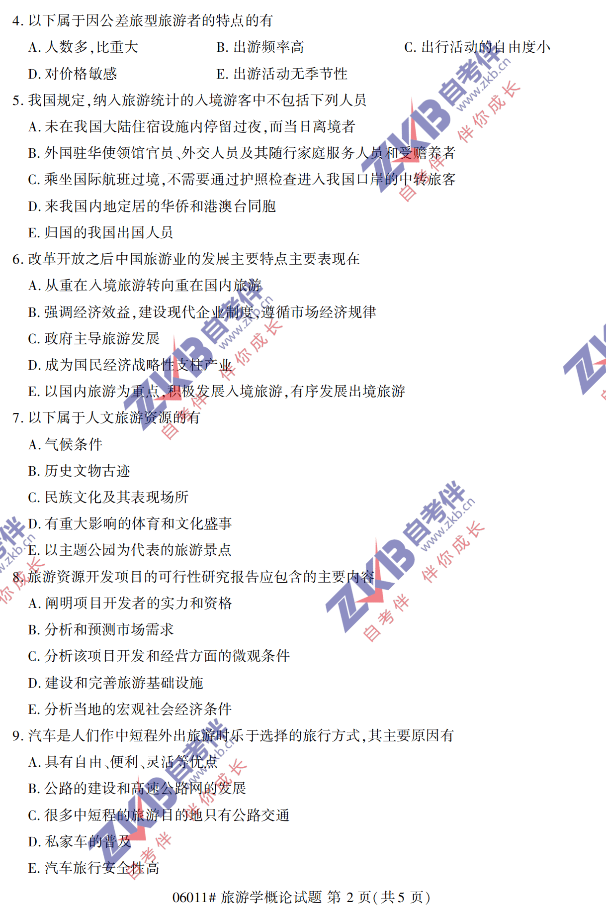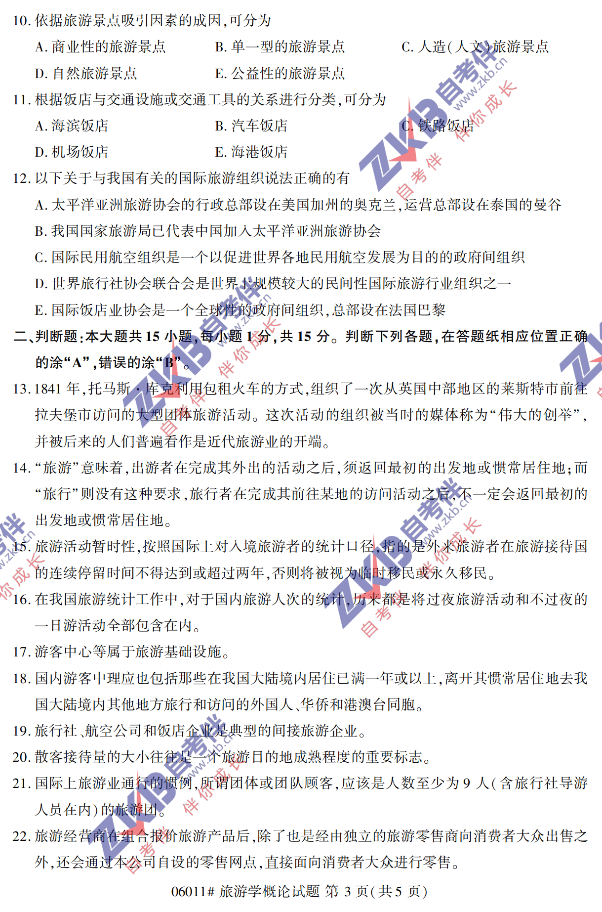 所在位置:浙江自考服务网 > 试题题库 > 历年真题 > 2021年10月浙江自考06011 旅游学概论试卷