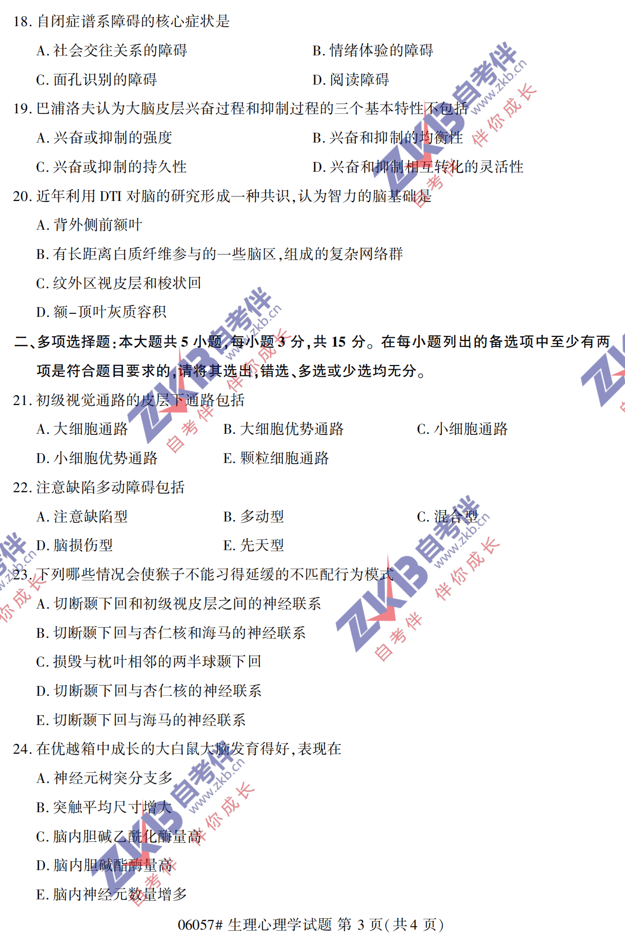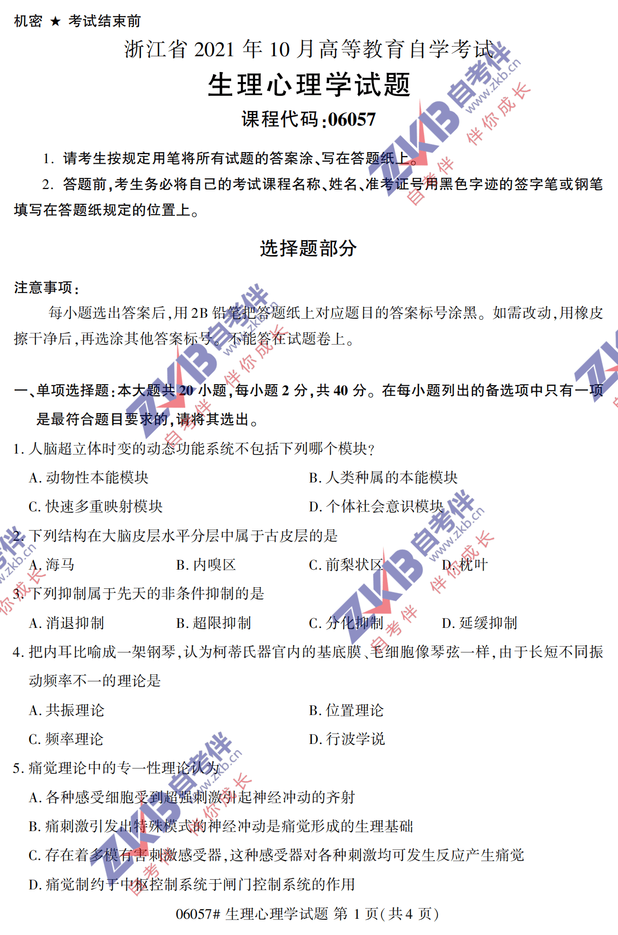 所在位置:浙江自考服务网 > 试题题库 > 历年真题 > 2021年10月浙江自考06057 生理心理学试卷