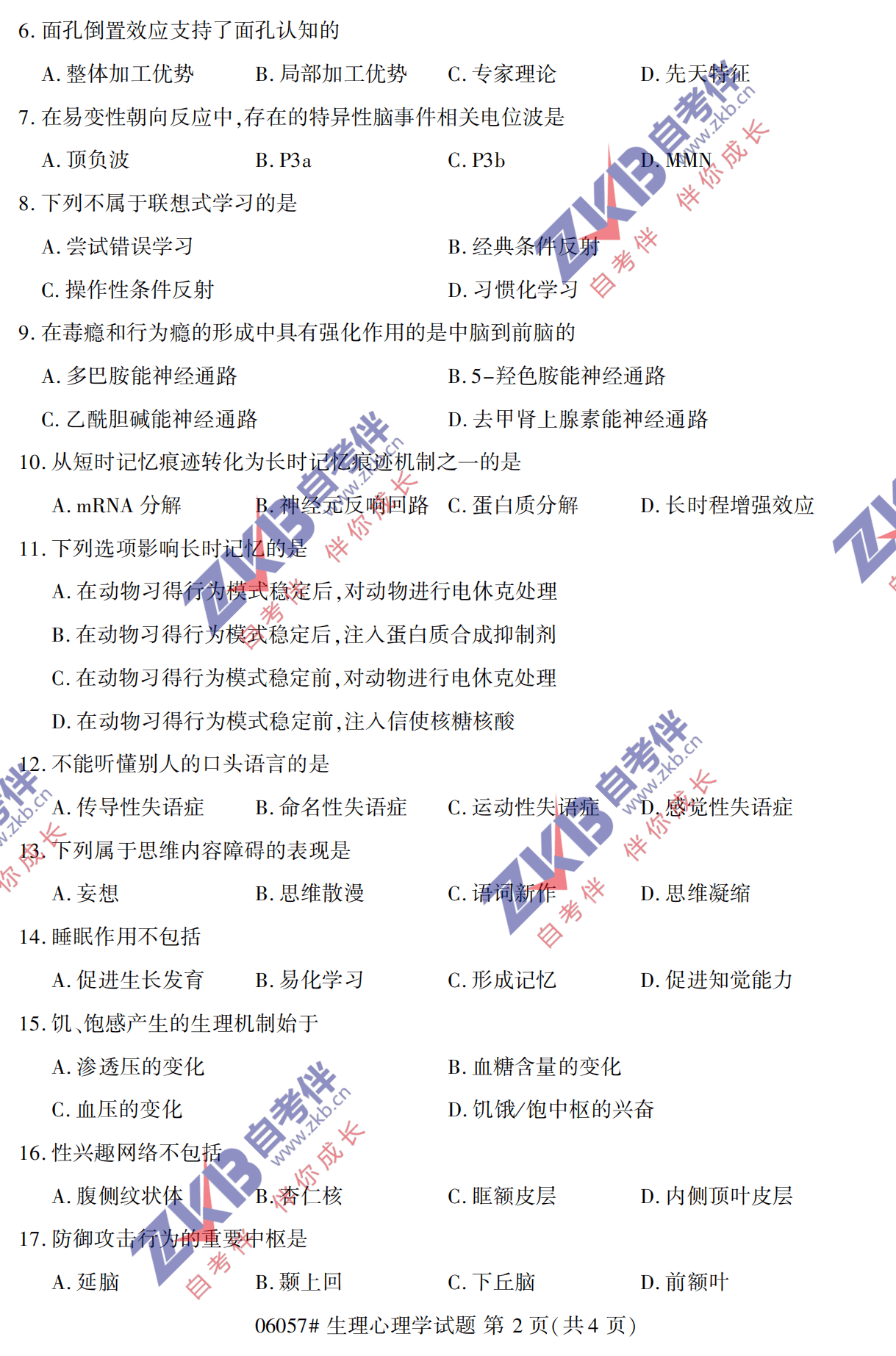 【导读】给大家整理了2021年10月浙江自考06057 生理心理学试卷,希望能给你们带来一些帮助,快来浙江自考网看看吧!
