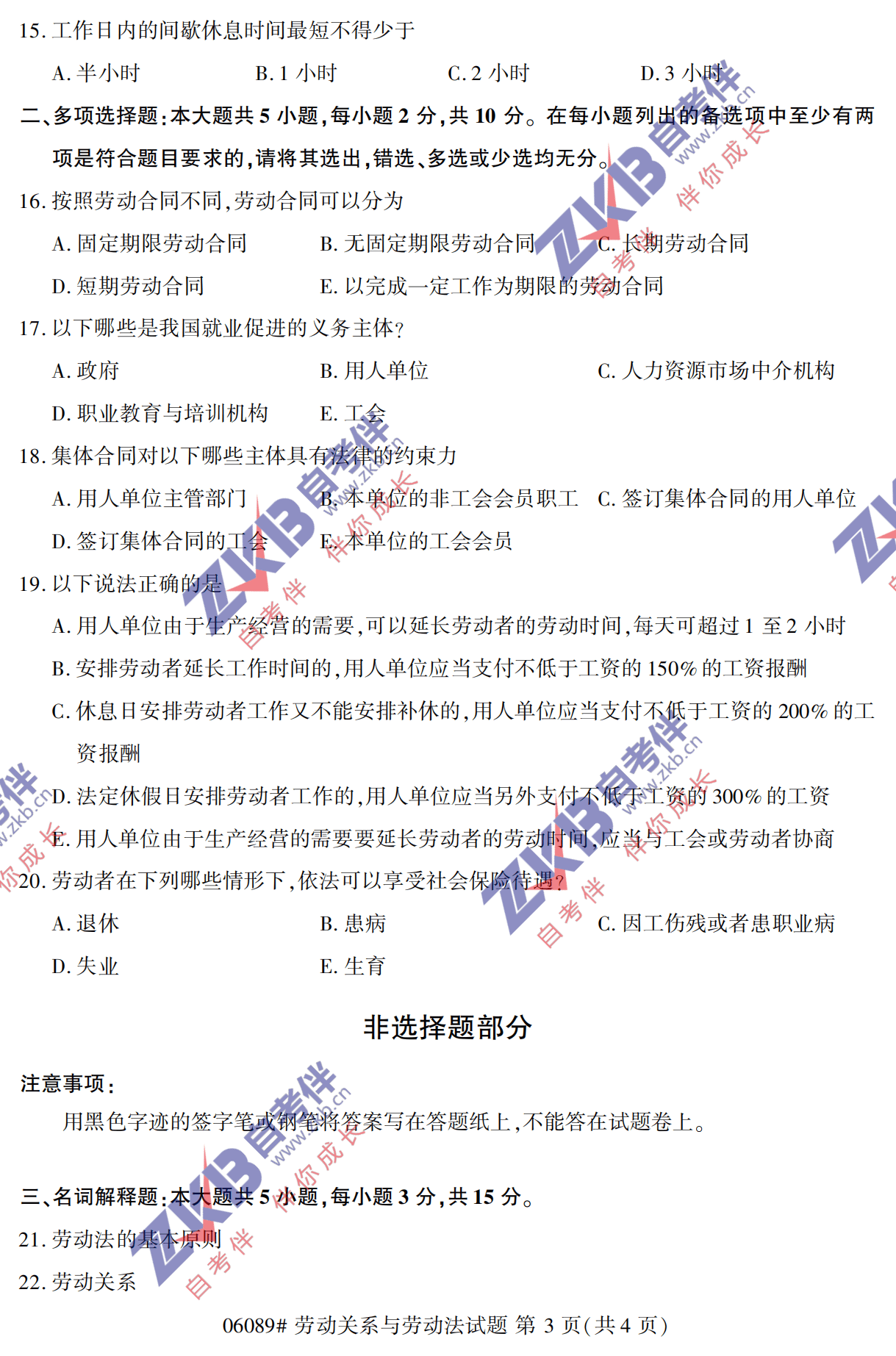 所在位置:浙江自考服务网 > 试题题库 > 历年真题 > 2021年10月浙江自考06089 劳动关系与劳动法试卷