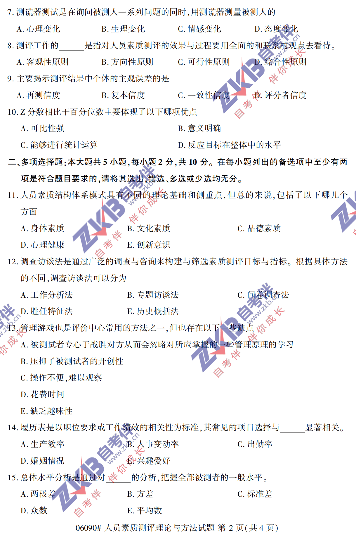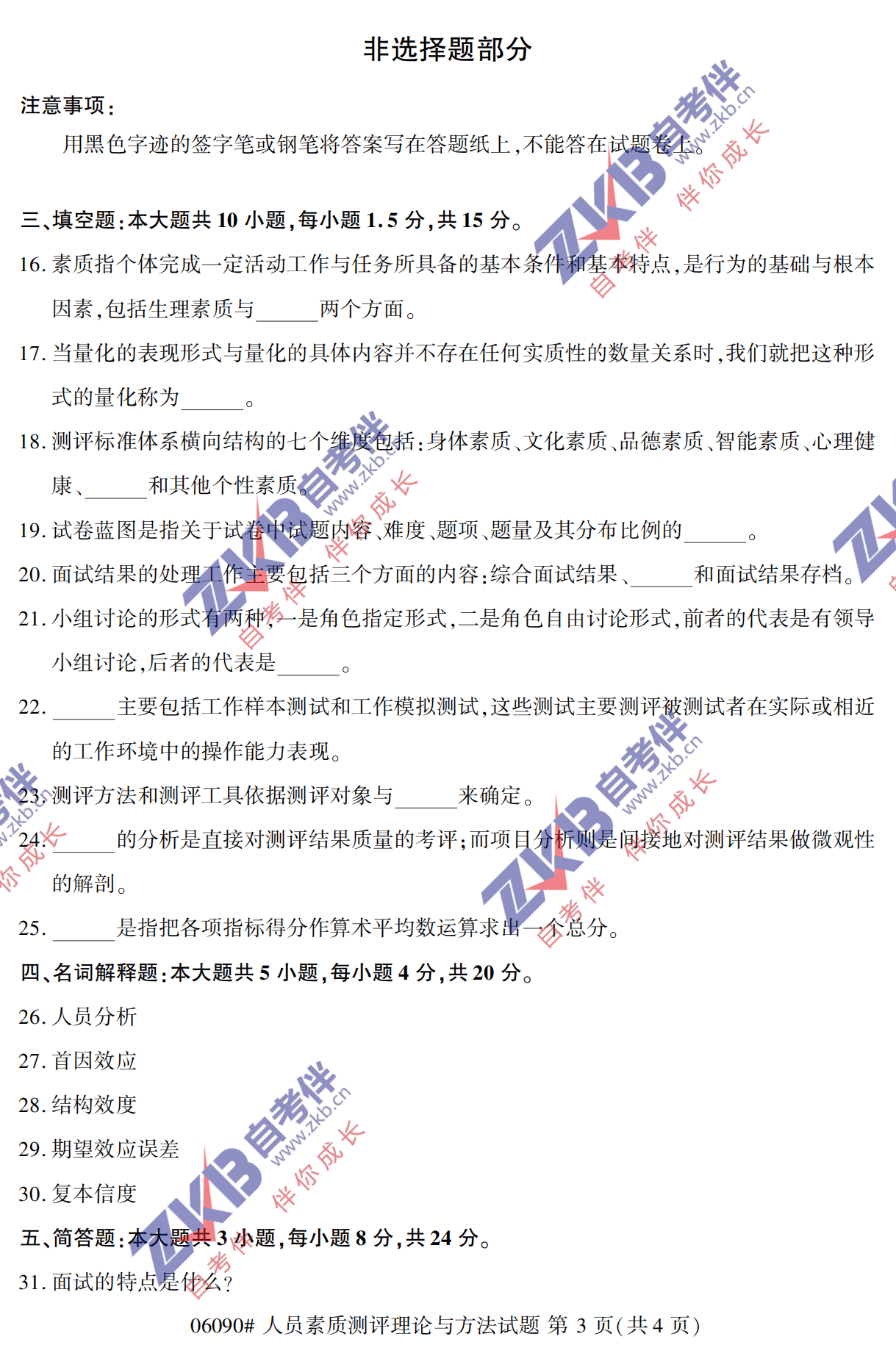 所在位置:浙江自考服务网 > 试题题库 > 历年真题 > 2021年10月浙江自考06090 人员素质测评理论与方法试卷