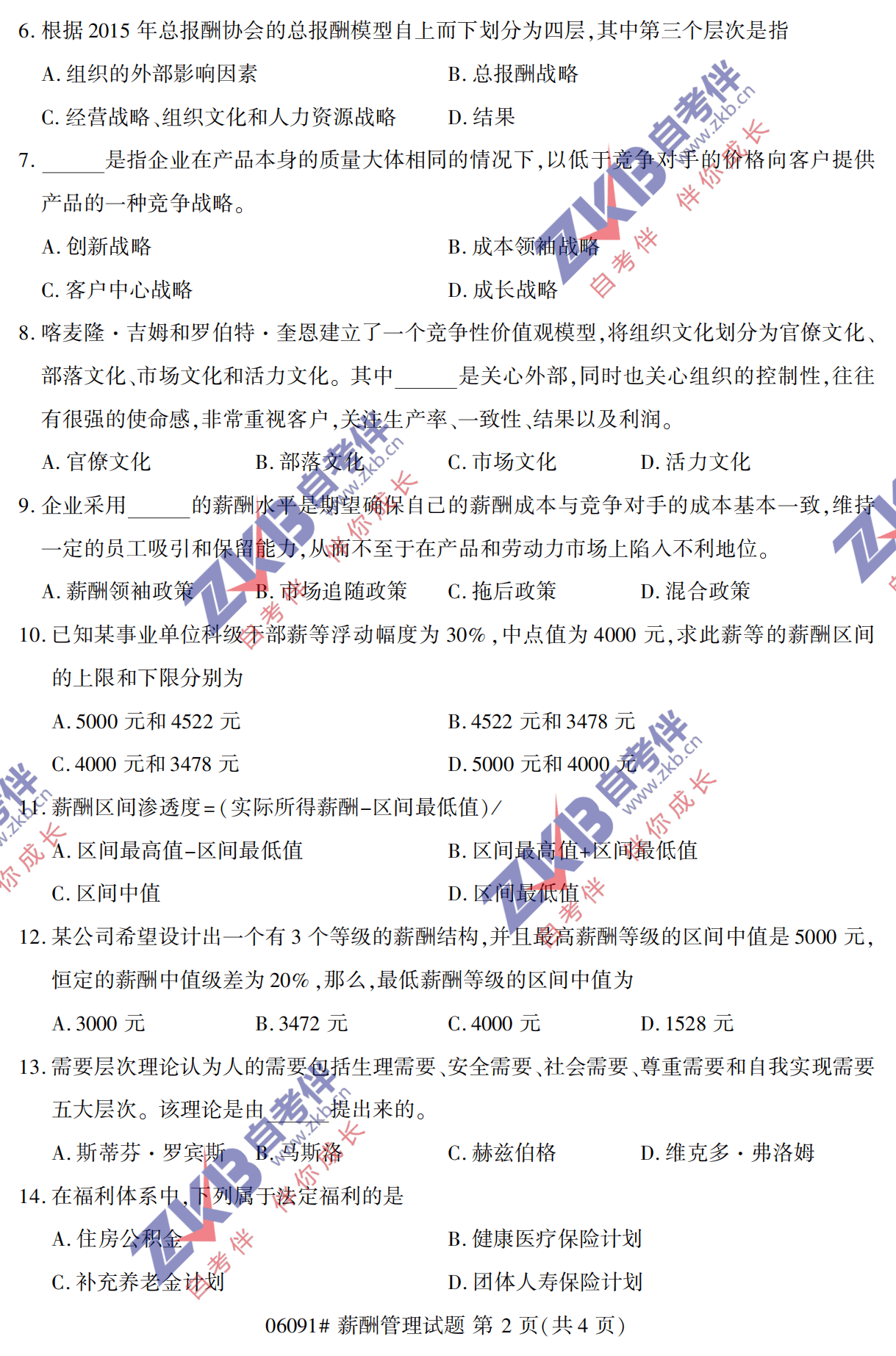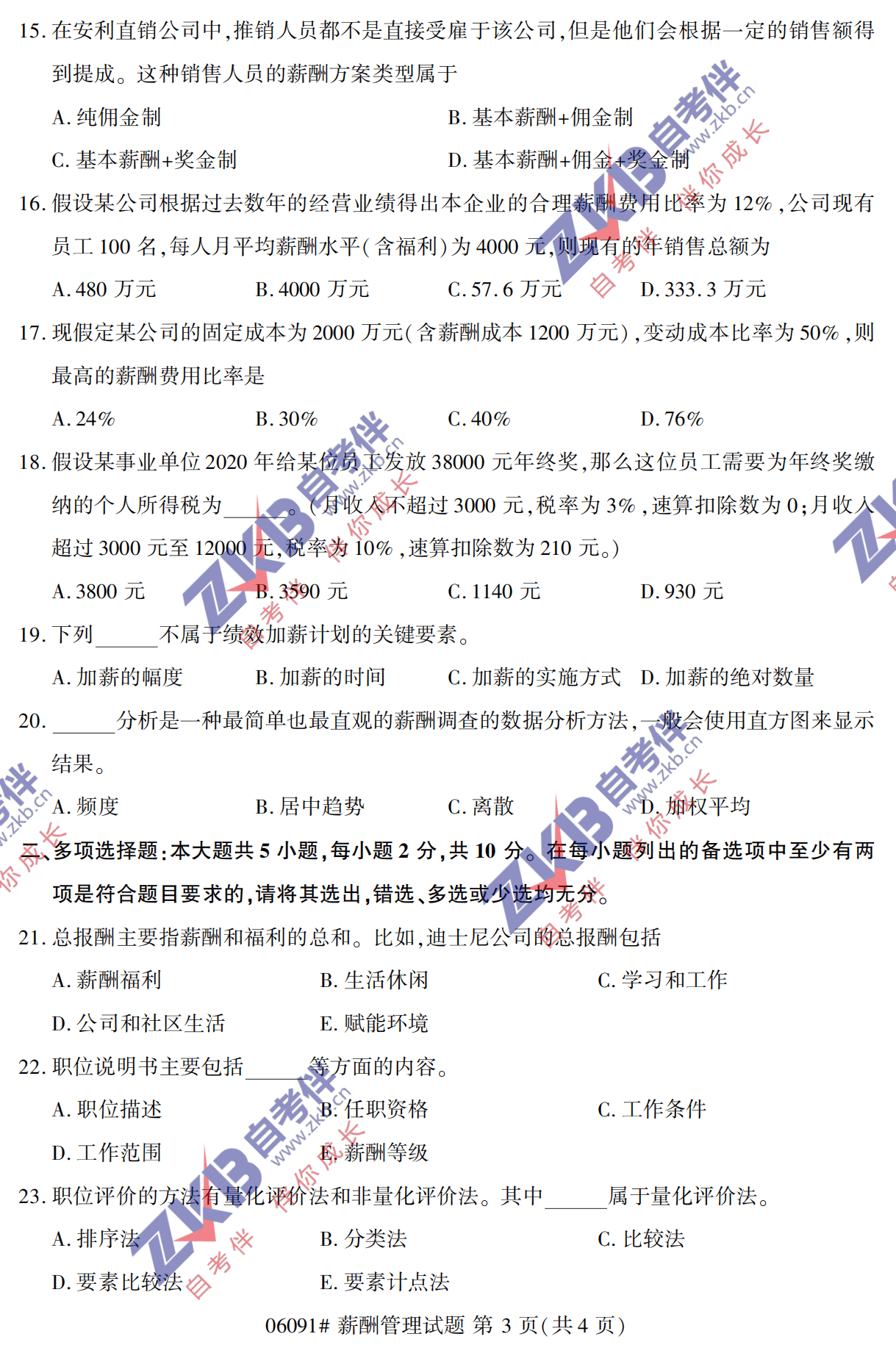 【导读】给大家整理了2021年10月浙江自考06091 薪酬管理试卷,希望能给你们带来一些帮助,快来浙江自考网看看吧!