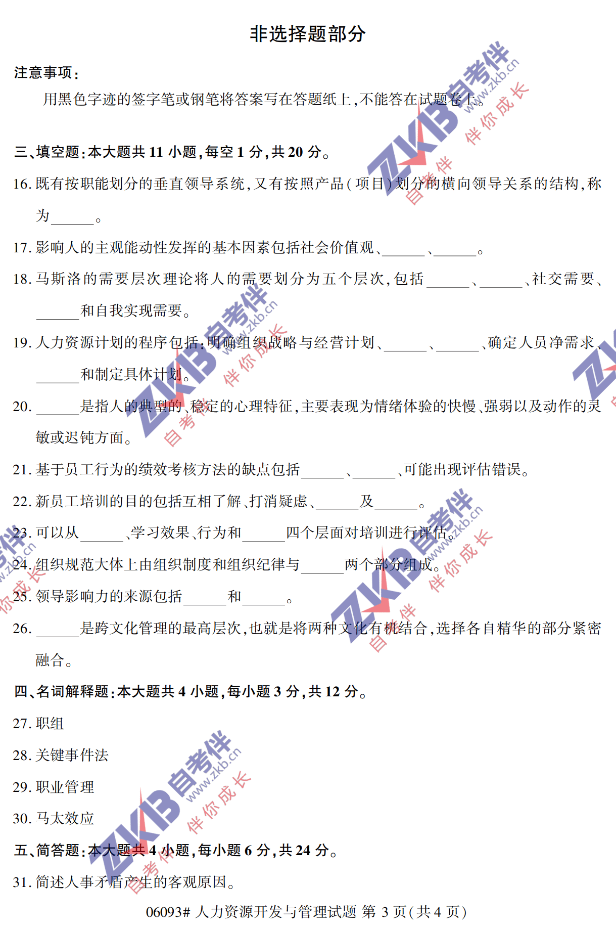 所在位置:浙江自考服务网 > 试题题库 > 历年真题 > 2021年10月浙江自考06093 人力资源开发与管理试卷