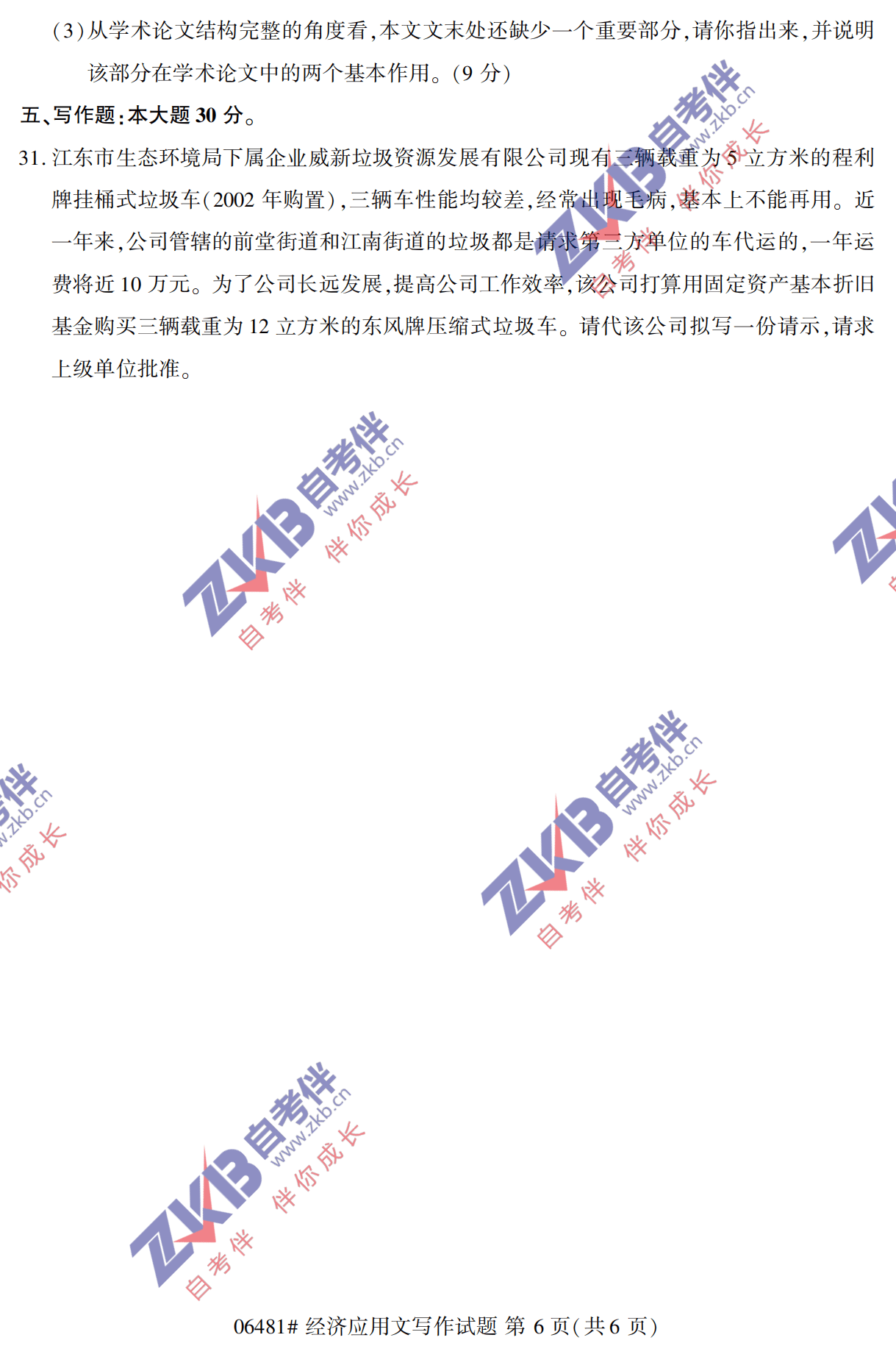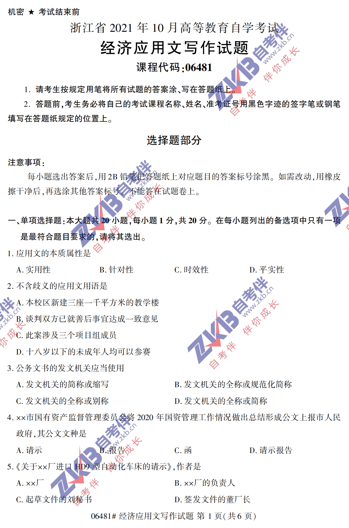 所在位置:浙江自考服务网 > 试题题库 > 历年真题 > 2021年10月浙江自考06481 经济应用文写作试卷