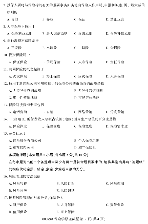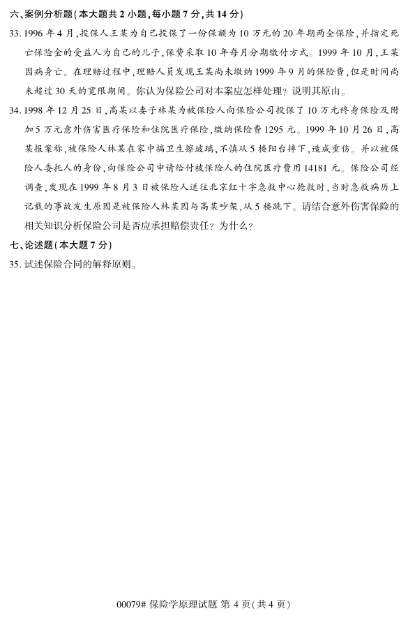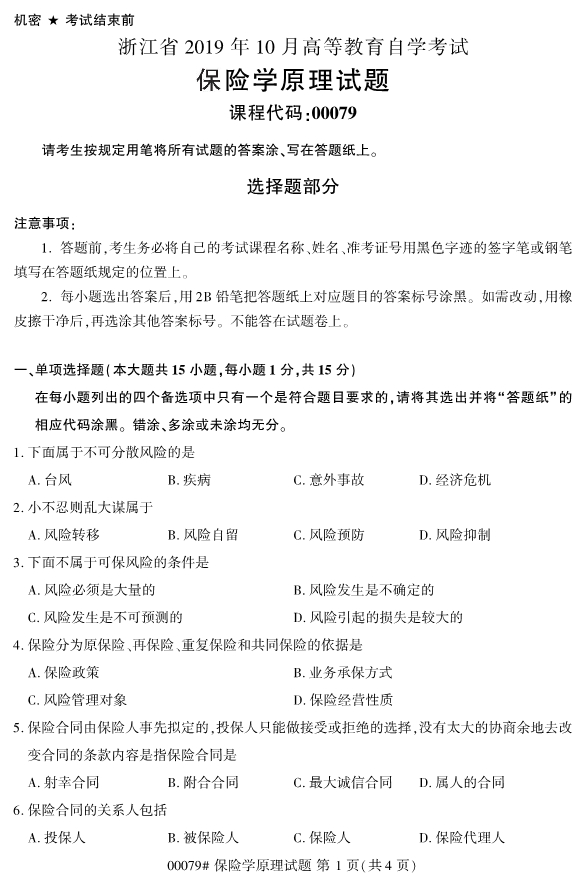 所在位置:浙江自考服务网 > 试题题库 > 历年真题 > 全国2019年10月自考00079保险学原理试题