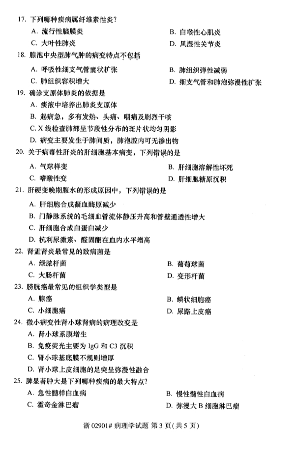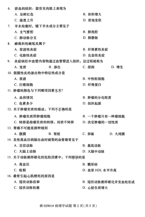 所在位置:浙江自考服务网 > 试题题库 > 历年真题 > 全国2019年10月自考02901病理学试题