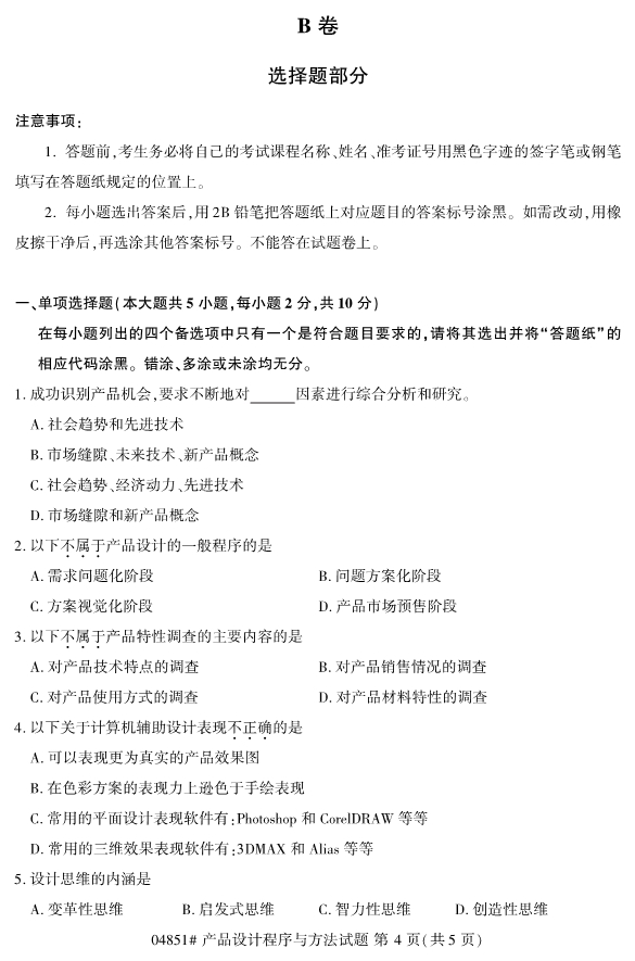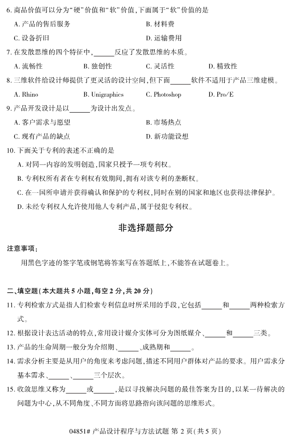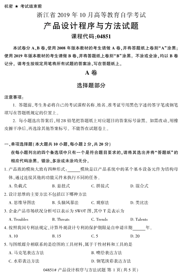 所在位置:浙江自考服务网 > 试题题库 > 历年真题 > 全国2019年10月自考04851产品设计程序与方法试题