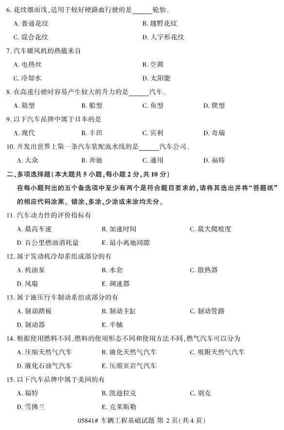 所在位置:浙江自考服务网 > 试题题库 > 历年真题 > 全国2019年10月自考05841车辆工程基础试题
