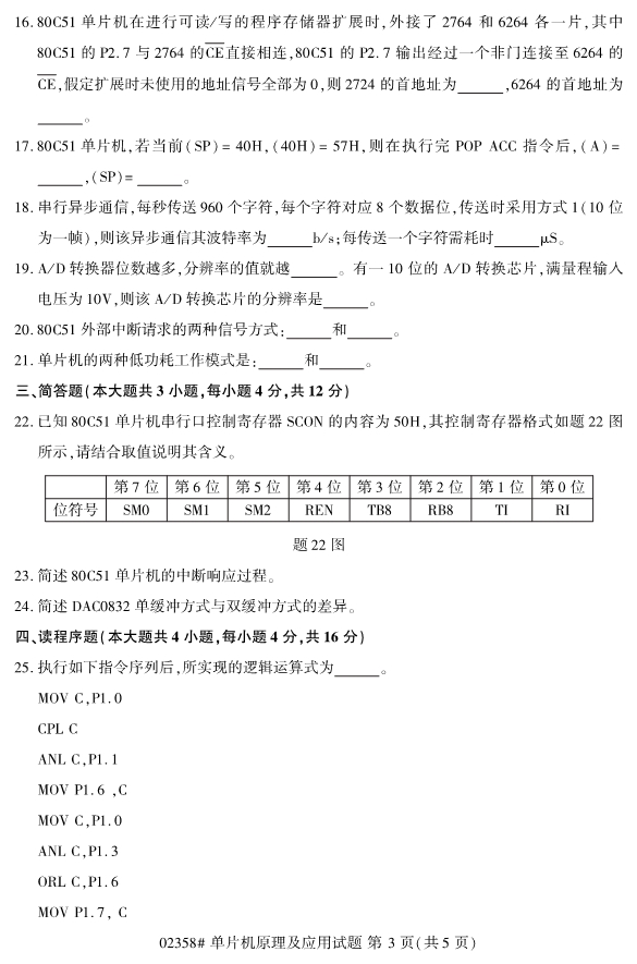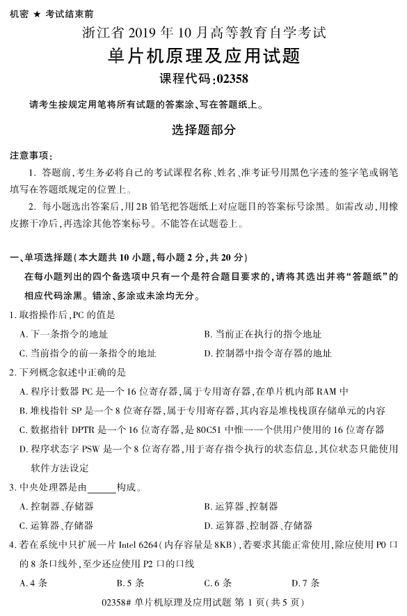 所在位置:浙江自考服务网 > 试题题库 > 历年真题 > 全国2019年10月自考02358单片机原理及应用试题